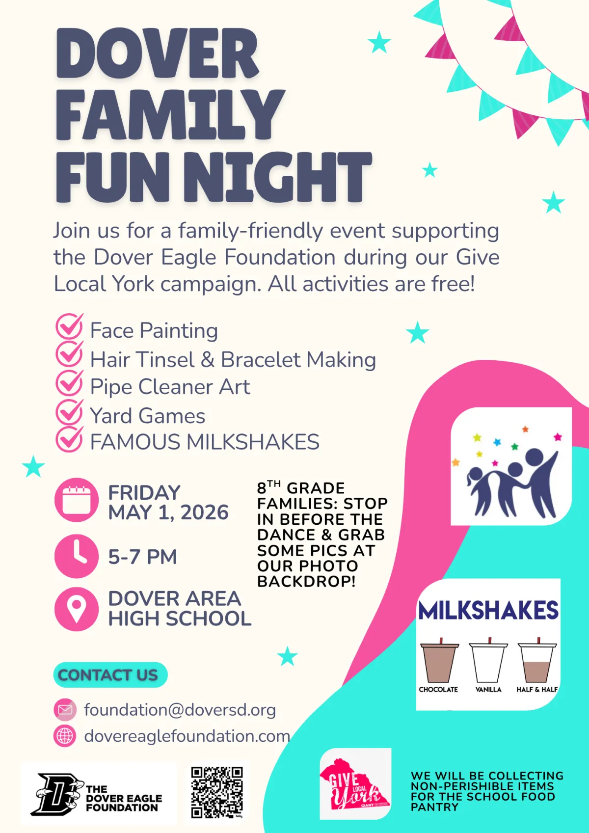 The Dover Eagle Foundation awards classroom grants each year. The goal of the Foundation is to support learning opportunities and a safe and supportive environment for Dover students. To find out more information about how to apply for a grant, or to learn about the winners, click "Read More", or follow the Dover Eagle Foundation Facebook page.